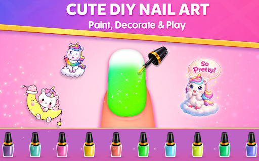 NailArt : Using an intuitive and user-friendly interface, players can choose from a vast collection of nail polish colors, including vibrant shades, pastels, neons, metallics, and more. They can also select from various nail art techniques such as gradient effects, marbling, stamping, or intricate designs using tiny brushes.