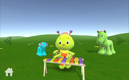 Personajes de Nianio que bailan y tocan distintos instrumentosConducción de un autito donde hay que escapar de un ovni mientras juntamos flores para pasar de nivel.