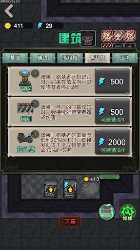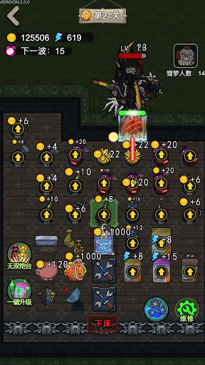 In the game, you need to avoid the hunt of the Nightmare Reapers, choose a room suitable for you to lie down, and start using your tower defense strategy to build gold coin production, energy production, attack towers and other buildings to resist the Nightmare Reapers. You need to choose a tower defense strategy reasonably to build buildings according to your current gold coins and energy. The waves of nightmare reaper invasions will constantly test your tower defense strategy!