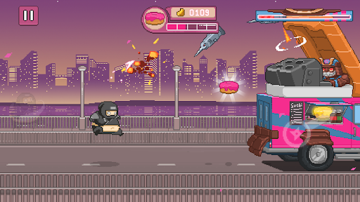 Beware of Pizza Pierates, the Traveling Rollnins, the Barbacarians, and other comical but deadly food bosses — as delicious as they sound, dangerous as they are! Tap to jump, dash, avoid obstacles and shoot your enemies with your shurikens to beat them.