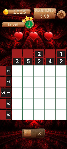 Example: If there’s an 8, you should color 8 squares. If there’s a 5 and a 2, you must color 5 squares, and 2 squares with a space between them. BUT LOOK OUT! Each line is crossed with another line, so the coloring should consider BOTH lines, and their corresponding numbers. If you get a square wrong, you get an X on it. If you get three X – you lose a life. Are you up to it? this is a mind game, this game develops cognitive abilities and fun at the same time
