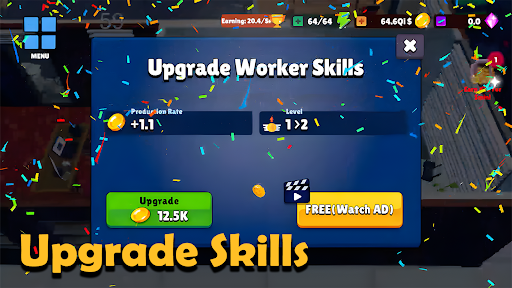 Hire and Upgrade Workers: Recruit a variety of workers and improve their skills to boost productivity and earnings.