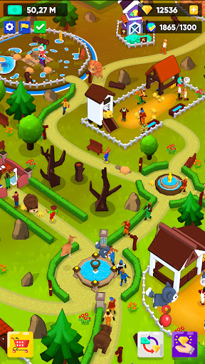 Although this is a business which centers pets love, you should still grow your business and make a lot of money to keep things working. By making enough money you can have more animals and discover new species. And this are all your responsibilities. You will have idle income both in game and offline. There will be customers who want to help your farm and they will throw money to wishing fountain and you can collect this idle money to improve the life quality of your pets.