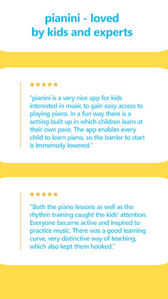 Download pianini to get access to a growing list of 500+ fun-filled lessons including well-known classical and self-composed songs. pianini -a playful tool to discover your child´s musical talents and participate in its progress.