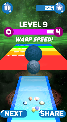 Use upgrades to increase the size of your sun and add moons to it's orbit. Watch out for asteroids that'll knock you off course and make you lose points. You can fly into black holes that force you to sail through space at warp speed.