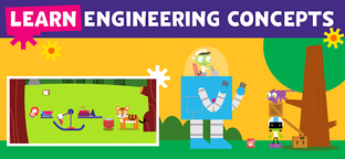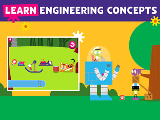 Kids explore and learn engineering concepts with games that grow with them. They experiment, problem solve, and unlock new challenges as they learn. Design machines and roller coasters, build with robots, and explore obstacle courses. Learn STEM concepts with your child as they experiment with simple engineering tools while distance learning.