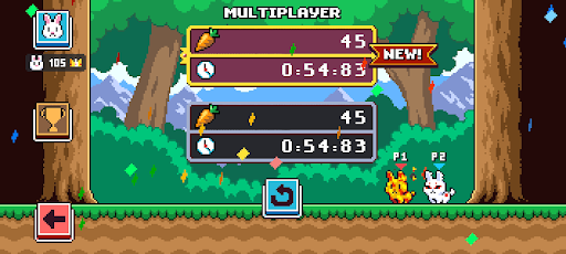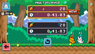 High score chaser game. Eat carrots, avoid traps to survive as a bunny. Play solo, co-op or versus modes. Unlock 100+ unique bunnies.