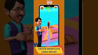 How to Play 'Popat Cut & Run Adventure': Indian Runner Game, Collect bricks to create shortcuts.