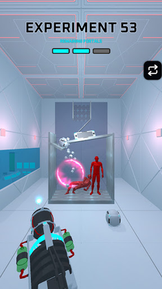 Puzzle game with physics-based experiments using a portal gun to open and close portals. Tricky mind-bending fun.