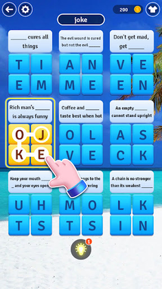 Unleash the power of your brain as you connect missing words through your fingertips to form complete proverbs.