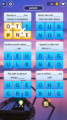 Proverb Master is not only your go-to game for leisurely amusement but also a brain-boosting adventure. It presents a user-friendly interface that blends wisdom and fun seamlessly in the word-connecting journey. Join us now and embark on this thrilling vocabulary adventure filled with exciting challenges!