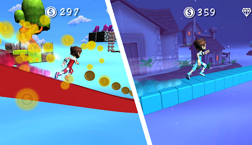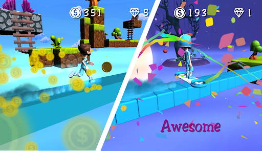 • Run, jump and surf .. changing the superhero color