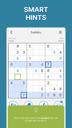 Smart hints - hints that don't just give you the right answer, but they also explain the situation and how the answer was calculated. This way, you can learn how to solve the puzzles by playing and using hints.