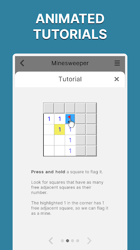 Animated tutorials - each game has a carefully crafted tutorial. Discover new games and easily learn how to play and solve the puzzles.