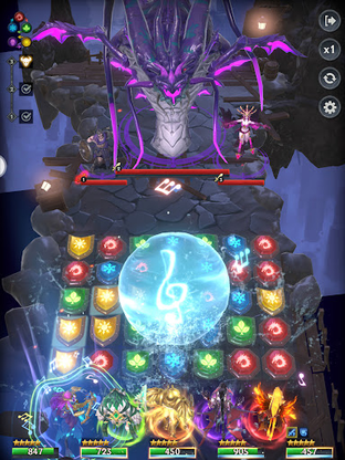 Подбирайте волшебные плитки, чтобы применять навыки героя.