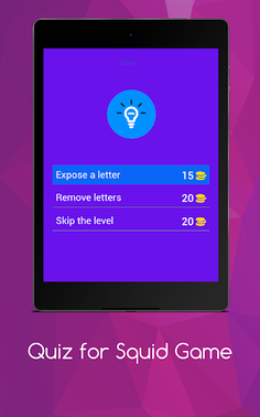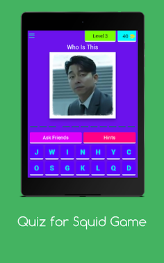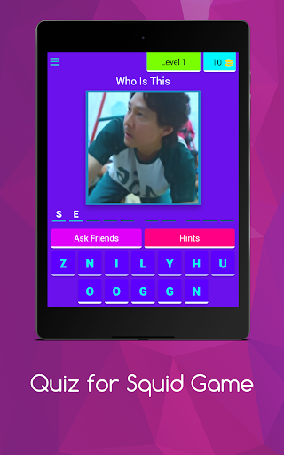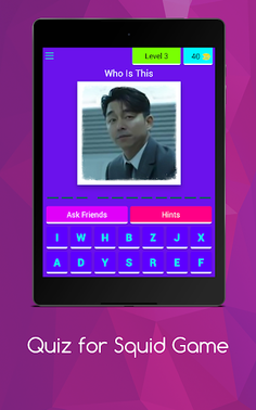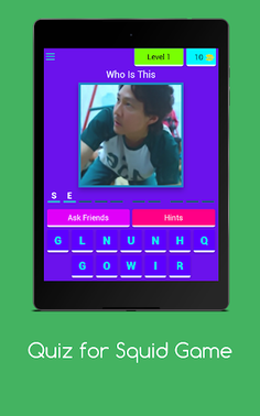 -- Quiz for Squid Game -- • > Challenge yourself by testing your knowledge about the TV series The Squid Game -- Squid Game features --• Play is characterized by a large number of levels that contain a lot of excitement and suspense - we created the game for all of the fans of the TV series "The Squid Game" in the world who got to know many characters through this series, and for those who are hardly familiar with it.