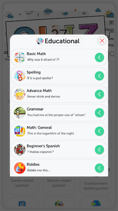 Difficulty: If you don't know answer then don't worry we will help you by help options. So you can keep learning. Our main aim is play & learn.