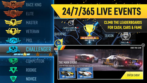Experience the excitement of live multiplayer events that take place in real-time. Compete with opponents from all over the world, with different skill levels to ensure a challenging and fair race for everyone. With a diverse calendar of live events featuring dozens of tracks, there's always a new challenge to face.