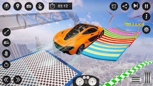 • Different camera views on mega ramps for thrilling vertical stunt car racing 2023