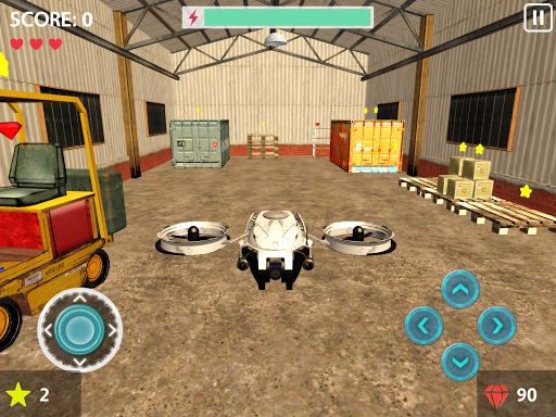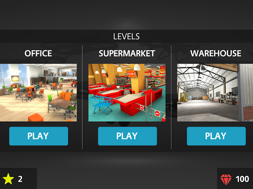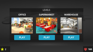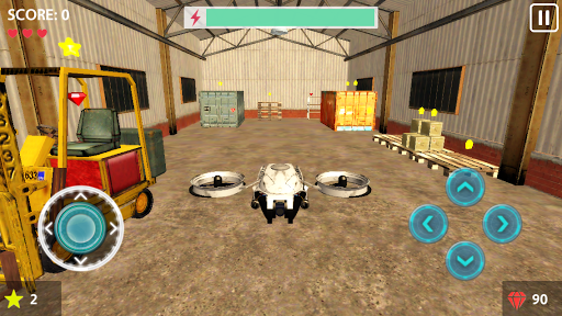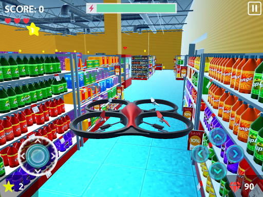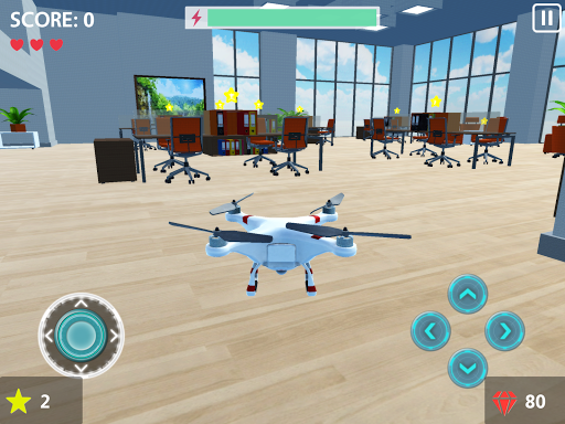 Fly remote controlled drones and collect stars at three different places: Office, Supermarket and Warehouse.