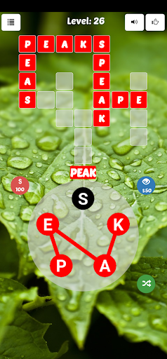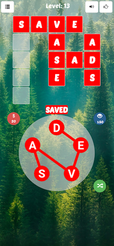Swipe the letters to find and guess the hidden words in a crossword-style grid.