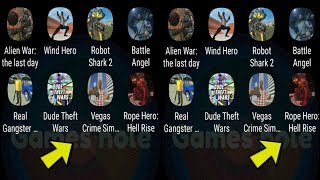 ► Real gangster crime,Vegas crime simulator,Rope hero hell rise,Wind hero,Robot shark,Dude theft wargames hole