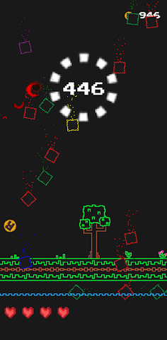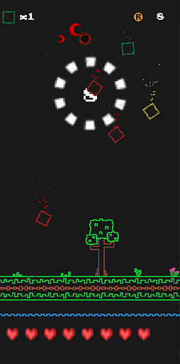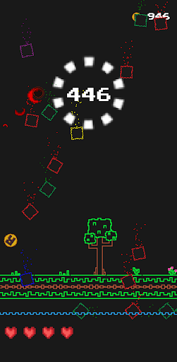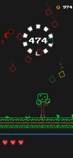 Special Squares: On your way, you will find different types of squares with unique effects. The green square allows you to collect score multipliers for even more impressive results. The yellow square gives you 20 direct points, while the blue square gives you a shield of protection. If you find a purple square, your horizontal direction will change, adding an extra challenge to your game. The orange square has the ability to eliminate the red squares, which are the ones that can hurt you. Finally, the pink square gives you an extra life so you can prolong your game.