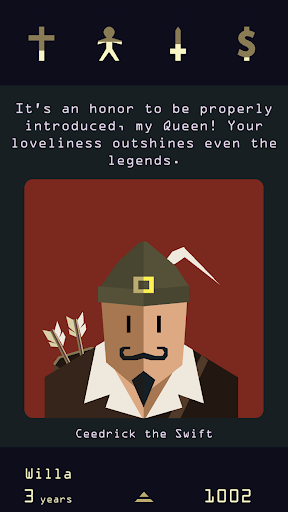 Reigns: Her Majesty is an innovative continuation of the widely popular game Reigns. In this game, the world has had a cultural 'renaissance', bringing with it knowledge and enlightenment. However, this new era is also plagued with greed and jealousy, which threaten to overthrow the benevolent queen and her husband. As the queen, you must make decisions by swiping left or right, which may sway the balance between the kingdom's most powerful factions.
