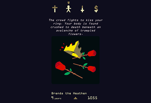 Reigns: Her Majesty is a collaboration between François Alliot (design/programming), Arnaud de Bock (art), Jim Guthrie (music), and Leigh Alexander (narrative director). With the new Transformation Update, the game promises an exciting and immersive experience with new characters and ways for players to meet their demise.