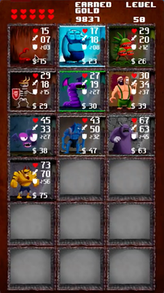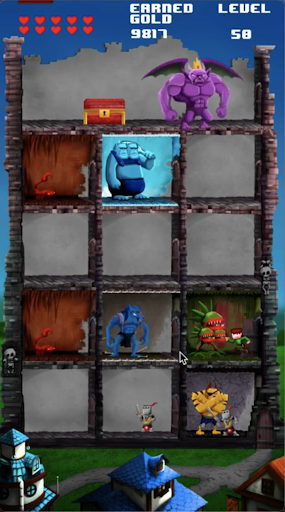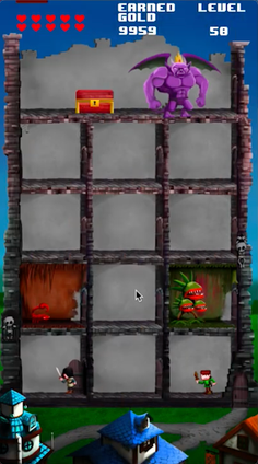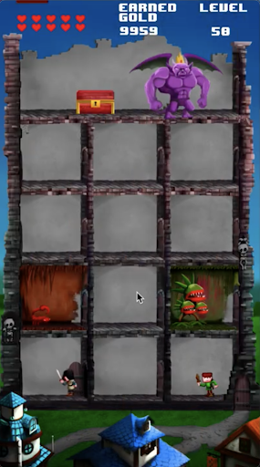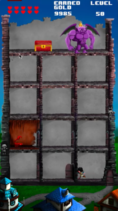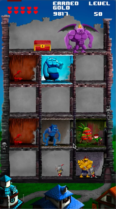 Protect your castle from the villagers' warriors, earn gold by defeating them, build up to 10 different monsters dungeons for more than 200 levels.