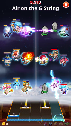 A rhythm game with classical musicians turned into heroes, featuring new runes and artifacts. Tap the screen and follow the beats to level up and collect various characters.