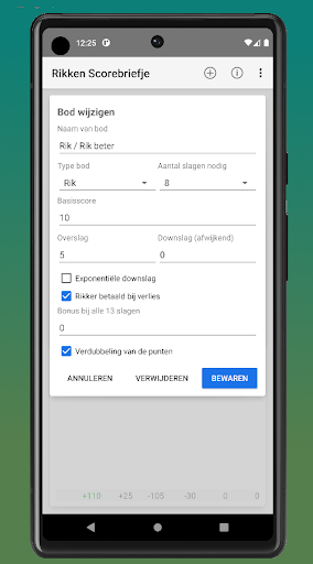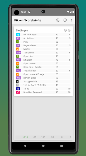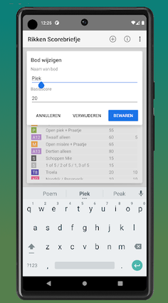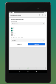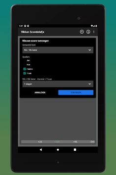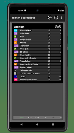 Met deze app kun je gemakkelijk de scores van het Rikken bijhouden. Hanteren jullie andere scores dan standaard? Met deze app kun je die ook aanpassen.
