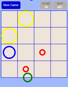 Drag a new ring from outside into the table. If a cell already has a ring or rings, you can add the new ring if it is larger than the existing ring or rings. You can re-drag the largest ring from one cell into another. If a cell contains all four sizes of rings, they all disappear and the cell becomes empty again.