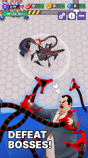 All for the sake of evolution: become the complete master of artificial intelligence, defeating people and evolving. Improve your robot's abilities, attack speed and capture radius to absorb people more effectively.