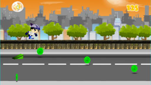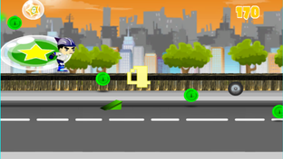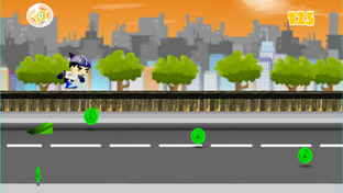 Travel the road in roller skates jumping and avoiding obstacles, if you hit an obstacle you will have the opportunity to continue, but next time you will lose the game.