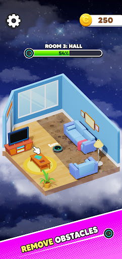 Play this unique fun game in which you have to move the furniture around to make way for the Roomba who works it's magic by cleaning the floor!