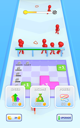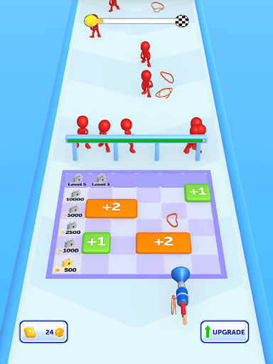 As you annihilate your enemies, earn money to upgrade your weapon, making it stronger and more effective. Merge blocks in the multiplier area to get more and stronger rubbers, and maximize your defense capabilities. Your strategic prowess will be put to the test as you position and move your gun to where it’s needed most.
