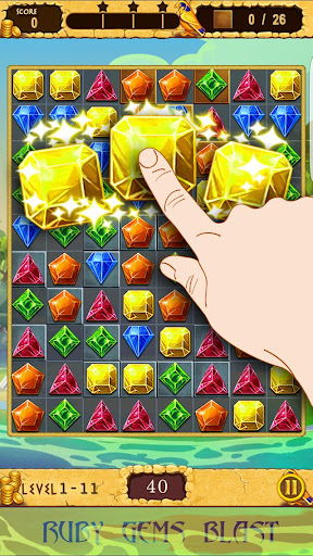 Play Ruby Gems Blast, a classic and addictive match-3 game with stunning graphics, boosters, and hundreds of unique puzzles levels!