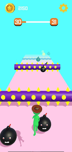 While running on the platform, will you be able to encounter different obstacles and complete the levels with different power-ups?