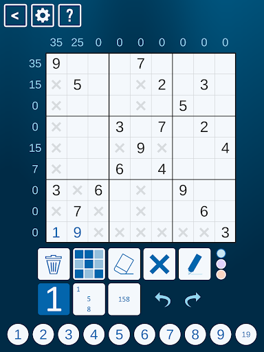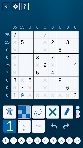 In Sandwich Sudoku, the puzzle is presented with extra numbers outside the grid next to each row and column. These numbers indicate the SUM of cells sandwiched between the 1 and the 9 in that row/column. The logic required to solve the puzzles will appeal to anyone who enjoys normal sudoku and a bit of basic maths. Each puzzle here has been lovingly hand-crafted by Mark Goodliffe and Simon Anthony, the hosts of Cracking The Cryptic. They've even included their own hints on each puzzle to help if you get stuck. Mark and Simon have both represented the UK many times in the World Sudoku Championship.