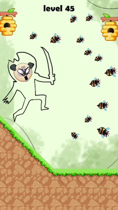 To protect the cute pup from the bees, just tap to draw one line and lift your finger once you're done. Be careful not to hurt the dog while drawing the line. It's fascinating to know that each level can have multiple solutions that are surprising, interesting, funny, or even unexpected.