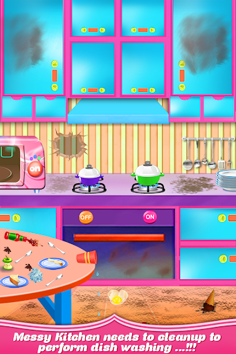 Cleaning your house is self explanatory task with your internal satisfaction. For the busy Mommy, make a plan to tidy and clean the house with job in a great way.Always have a cleaning checklist.You can vacuum , clean, sweep and mop all rooms together.Grade school kids can pick up their bedrooms and floors, where teen can clean the garage and bathroom. Try hand washing dishes in kitchen, dry your dishes, clean the oven and microwave, organise the cabinets, organise the clutter and make the bed, dust, vacuum, mop or spray are nice scent in the room. Dust the furniture like a housekeeper.Play the other games for girls and kids & Enjoy free Download.