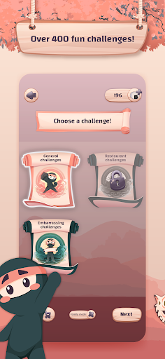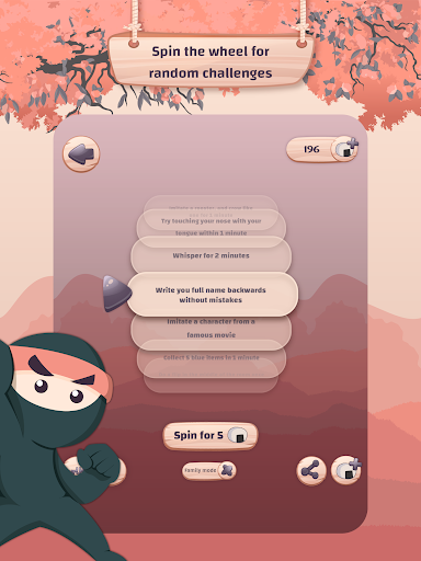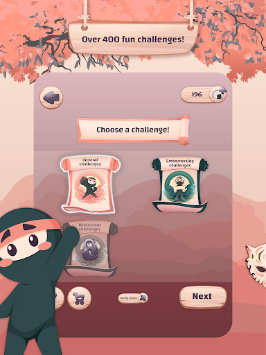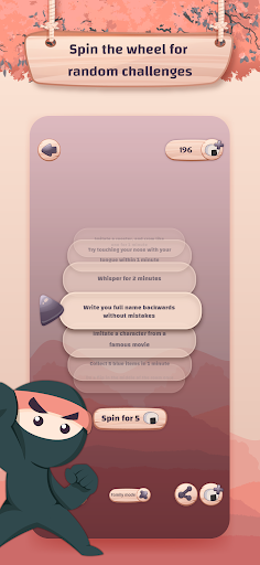 Who is the smoothest Ninja in the group that can achieve all the challenges in secret without getting caught? Act normally as if you are hanging out to win! Play it now with your friends and family and live moments of laughter with failed attempts of doing the challenges.