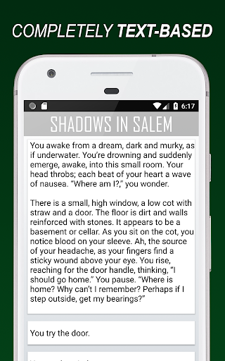 Shadows In Salem is a completely text-based, choice-driven game that adapts to your choices.