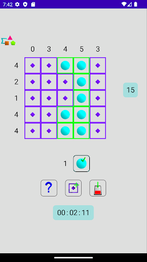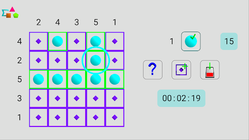 - easy: a cell can be empty or have value 1 (circle)