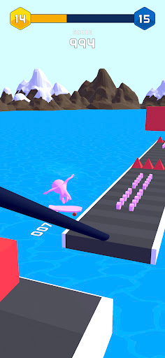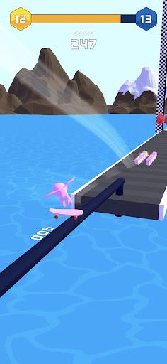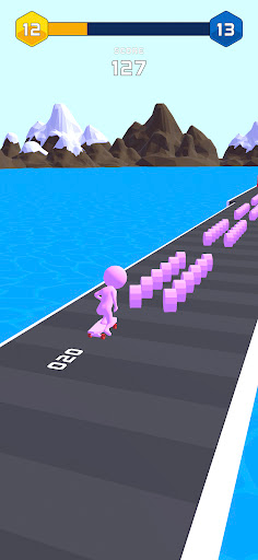Collect building blocks to build a ramp then skate up