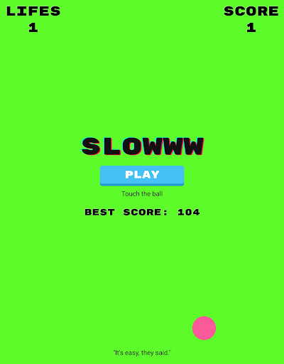 Slowww is a minimalistic, easy to play and fun game created to keep you entertained and "stress-free".