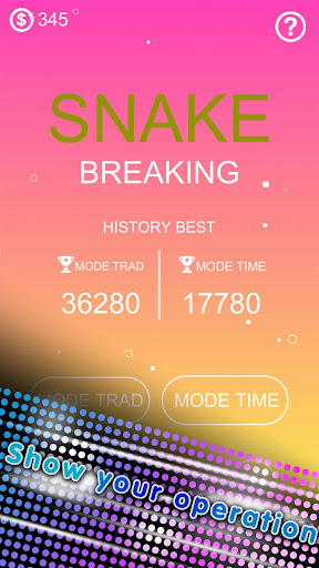 a easy and fun snakebreaking game nothing else to say,as it easy play now ,then you know this game has two modes, traditional mode and time mode welcome to play it.