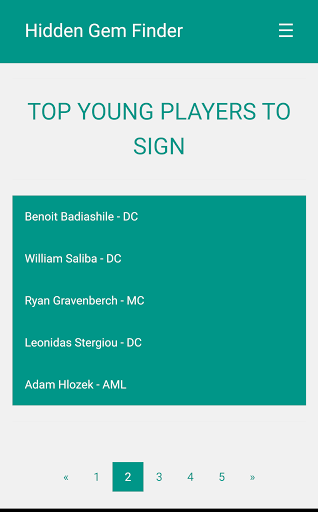 Each page contains five players. You can see more information about them by clicking on their names. You can also navigate between pages with navigator placed in the end of each page.