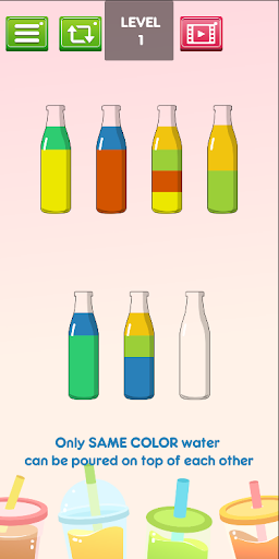 💚 - The ultimate objective? Achieve a state of liquid perfection! Complete each level by ensuring that only a single color remains in each bottle, creating a captivating symphony of hues.